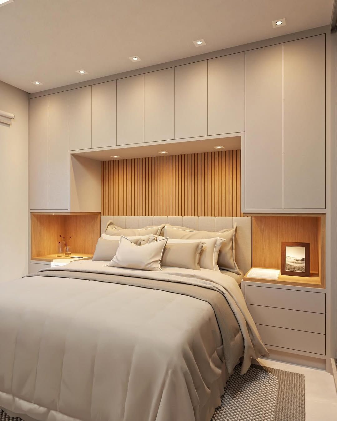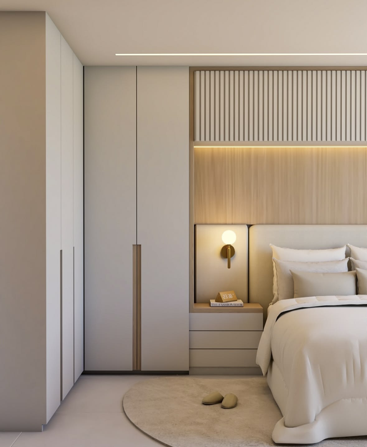 Guarda-roupas, painéis, cabeceiras e criados são pensados para otimizar cada centímetro do ambiente com elegância.